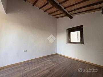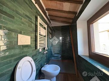 L'immobile è composto da una cucina a vista con fornelli a induzione, caratterizzata da una parete in mattoncini e travi a vista, che donano un tocco di originalità e calore all'ambiente. Attraverso un arco, si accede al soggiorno, caratterizzato da un pavimento in gres porcellanato grigio antracite che aggiunge un tocco moderno e raffinato. Al piano superiore si trova una camera matrimoniale con pavimento in gres porcellanato effetto legno, che crea un ambiente elegante e confortevole. La camera è dotata di un bagno finestrato con un'ampia doccia e spazio per la lavatrice, che è stata appena installata nuova. Completa il piano un comodo terrazzino, che verrà dotato di ringhiera.