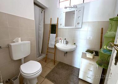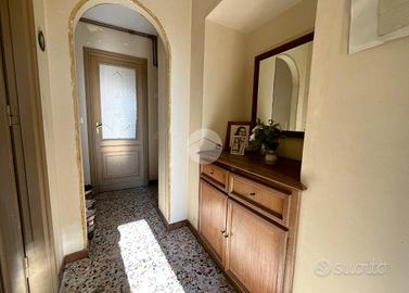 L'immobile è posto su tre livelli: al piano terra sono presenti un magazzino, un locale di sgombero, un disimpegno, un bagno ed un negozio. Al piano primo, accessibile da scala esterna o da scala interna comune, ingresso, cucinino con terrazzo, soggiorno, due camere da letto, un bagno e un balcone. Al piano secondo, accessibile da scala comune, una camera matrimoniale con balcone, uno spogliatoio ed un bagno di servizio.