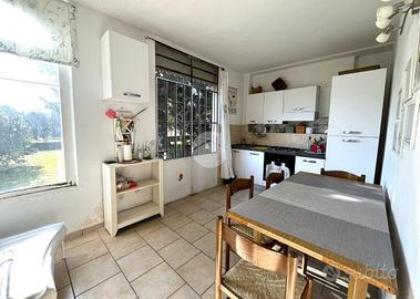 A completare la proprietà un box auto singolo, un ripostiglio, una legnaia, un magazzino e un ampio giardino, di circa 580 mq, completamente recintato.