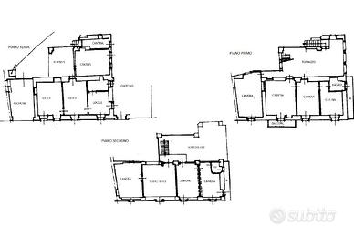 L'immobile, di circa 140 mq, è posto su tre livelli. Al piano terra, sono presenti cantine e locali da adibire a proprio piacimento. Al piano primo, raggiungibile da scala esterna, un ampio terrazzo e ulteriori locali. Al piano secondo, sottotetto e due vani.