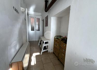 L'immobile è posto su tre livelli: al piano terra sono presenti un magazzino, un locale di sgombero, un disimpegno, un bagno ed un negozio. Al piano primo, accessibile da scala esterna o da scala interna comune, ingresso, cucinino con terrazzo, soggiorno, due camere da letto, un bagno e un balcone. Al piano secondo, accessibile da scala comune, una camera matrimoniale con balcone, uno spogliatoio ed un bagno di servizio.