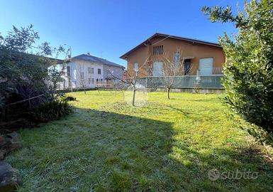 A completare la proprietà un box auto singolo, un ripostiglio, una legnaia, un magazzino e un ampio giardino, di circa 580 mq, completamente recintato.