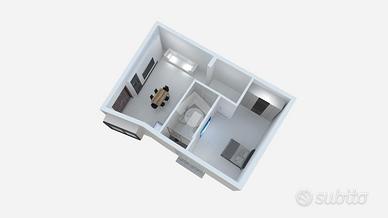 In zona centrale proponiamo una soluzione semiindipendente in fase di ristrutturazione totale, con consegna prevista entro il 30 settembre 2026. La soluzione posta al primo piano, si compone di una zona giorno, con arco finestrato, che porta ad un disimpegno dal quale accediamo alla camera da letto con balcone e al bagno con balcone finestra.