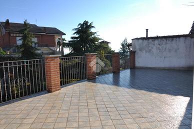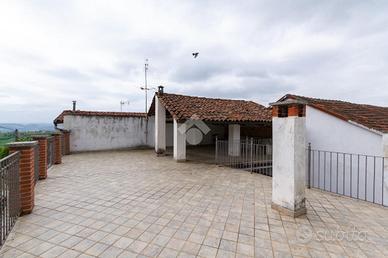 ANTIGNANO D'ASTI - Nel centro del paese, a pochi passi da tutti i servizi, questa abitazione semindipendente ha caratteristiche davvero particolari: l'ampio terrazzo panoramico è parzialmente coperto da una tettoia in coppi, dove relizzare un piccolo angolo cottura o barbecue per l'estate; il cortiletto interno è intimo e privato, la doppia cantina è situata nell'interrato. Internamente la superficie presenta un salone con angolo cottura e caminetto, due bagni da ultimare, uno per piano, tre camere letto e due ripostigli, con bella balconata, il tutto da rifinire e personalizzare.