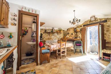 Nel caratteristico borgo di Rocca di Fondi, comune di Antrodoco, proponiamo in vendita proprietà composta da 2 fabbricati adiacenti e terreno circostante di 180 mq. Un fabbricato misura 29 mq e si compone di soggiorno con angolo cottura con camino, balcone e 1 bagno con doccia cieco; come ulteriore sfogo esterno una corte con portico che conduce al cancello pedonale d'ingresso. A pochi metri da questa struttura c'è Il 2° fabbricato il quale misura 28 mq calpestabili e si compone di 1 camera matrimoniale e 1 bagno con doccia. A completare c'è una cantina e anche qui, corte esterna e terreno e un cielo terra nel centro storico copletamente da ristrutturare oggi al catasto F/2. Lo stato è ottimo in quanto sono stati ristrutturati nel 2005 con pietra a vista, travi in legno, infissi in legno doppio vetro. Per quanto concerne il riscaldamento in un fabbricato è presente solo il camino mentre nella camera da letto c'è un termo convettore elettrico ma è possibile allacciare il metano in quanto è presente. La proprietà si trova in posizione comoda del paese poiché non è all'interno del centro storico; vi è possibile parcheggiare l'auto proprio fronte casa. Rocca di Fondi è un piccolo borgo a 900 metri di altitudine, circondato da verde e montagne, non sono presenti servizi come bar, alimentari ma è necessario recarsi ad Antrodoco, il suo comune che si trova a 7 km di distanza. Classe: G IPE: 450,42 kwh/mq anno.