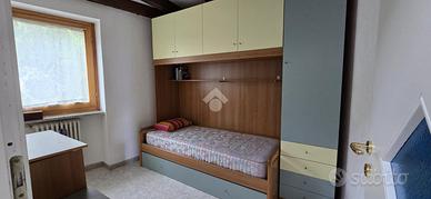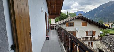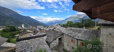 In collina di Aosta, Frazione Excenex, a 7 km dal centro, la casa semindipendente è disposta su due livelli. L'ingresso è sulla zona giorno, la cucina è abitabile con l'uscita sul balcone a sud con un'ottima vista panoramica. La zona notte ospita una camera, una cameretta e bagno. Al piano sottostante si accede tramite una scala interna il quale ospita una camera e un bagno. Completa l'unità l'area verde adiacente alla casa, il terrazzo, la cantina e il posto auto. Il riscaldamento è autonomo e non sono presenti spese comuni.