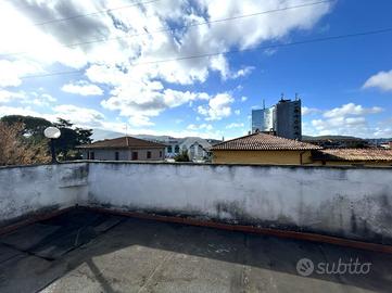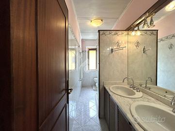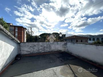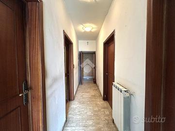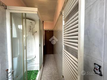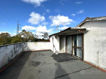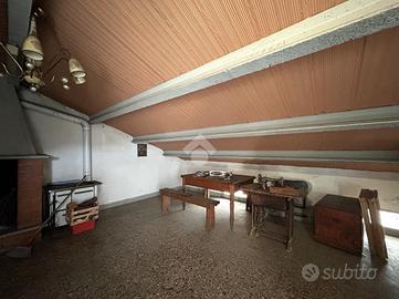 L'immobile, disposto su due livelli, è così composto: entrando, al piano principale, si trova l'ingresso, sulla sinistra vi è lo studio con l'accesso sul terrazzo verandato, sulla destra è presente la cucina con le scale che portano al secondo piano. Sempre sulla sinistra è presente il bagno, a destra la camera da letto matrimoniale. Frontalmente è presente la sala con balcone. Accedendo al secondo piano, si trova l'ampia soffitta, utilizzabile come mansarda, con terrazza abitabile.
