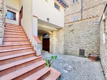 All' interno del centro storico di Assisi, nelle immediate vicinanze di Piazza del Comune, disponiamo di semindipendente di 195 mq caratterizzata da un bellissimo ingresso indipendente che affaccia su Corso Mazzini e corte privata di 100 mq.
