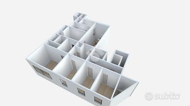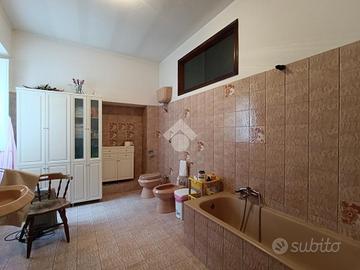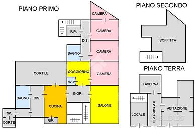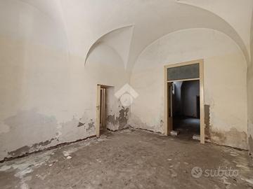 L'immobile è così composto: al piano terra un accogliente androne, ampio appartamento da ultimare con ingresso indipendente, una taverna ed locale commerciale con accesso interno convertibile in garage. Tramite una scalinata interna si accede al piano primo, composto da un luminoso ingresso, cucina abitabile ed un soggiorno con camino. A valorizzare ulteriormente l'immobile un elegante salone, impreziosito da un sontuoso affresco che ne adorna le volte, donando all'ambiente fascino e prestigio. Nella zona notte sono presenti quattro camere da letto, ripostigli, lavanderia e tre bagni. Completano il piano due cortili a cielo aperto, con affaccio interno e scorcio sul centro storico.