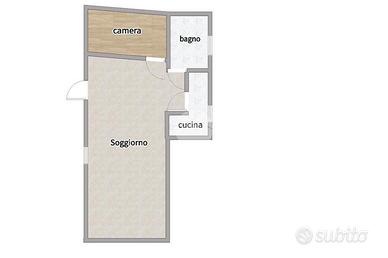 L'abitazione ci accoglie un ampio soggiorno, luminoso e ben distribuito con camino e cucinotto, camera matrimoniale.