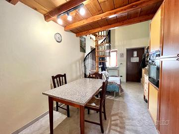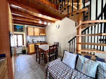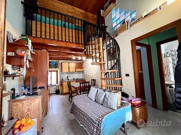 Tramite una scala esterna si accede al primo piano, dove ci accoglie il secondo alloggio, anch'esso con ingresso indipendente, composto da zona living con cucina, camera da letto, bagno finestrato con vasca e un affascinante soppalco a vista sul soggiorno, collegato da scala a chiocciola.