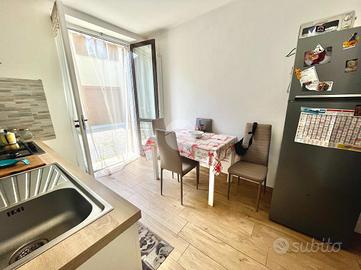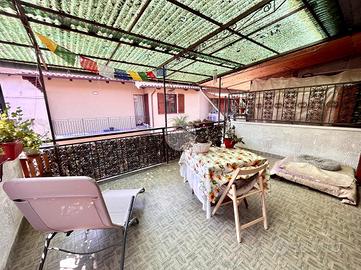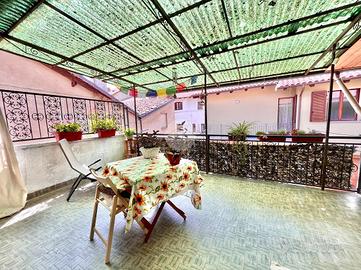 Questa casa semindipendente, situata all'inizio del centro storico della città è pronta ad accogliervi con calore e funzionalità, puntando sulla sua indipendenza e sul suo ampio terrazzo. All'ingresso sarete accolti da un soggiorno spazioso, ideale per momenti di relax e convivialità, dove è possibile installare una stufa a legna per un tocco di calore aggiuntivo nelle serate invernali. Un pratico ripostiglio offre spazio extra per mantenere l'ambiente ordinato e organizzato. La cucina indipendente, con accesso diretto al cortile comune, è perfetta per chi ama cucinare e ricevere amici e familiari. Il piano terra si completa con un antibagno e un bagno recentemente ristrutturati, che uniscono estetica e funzionalità per il massimo comfort. Salendo la scala interna si giunge al piano superiore dove vi è una camera matrimoniale molto spaziosa ed un secondo ripostiglio. Il punto forte di questa proprietà è l'ampio terrazzo, un'oasi di tranquillità in cui potrete pranzare all'aperto, godervi il sole e rilassarvi. Il riscaldamento autonomo a metano garantisce efficienza e controllo dei consumi, rendendo la casa accogliente e sostenibile.