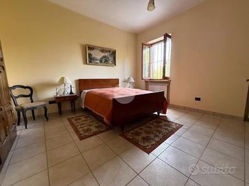 In zona tranquilla e immersa nel verde casa semindipendente composta da due unità abitative e circondata da un ampio giardino privato di circa 2.000 mq, ideale per chi ama la natura e la quiete. La proprietà si distingue per la posizione ottimale, che le garantisce ambienti luminosi e ben esposti durante tutto l'arco della giornata. Il piano terra, ristrutturato nel 2000, si presenta buone condizioni. Gli spazi interni sono ampi e ben distribuiti, con una cucina spaziosa, un soggiorno separato, tre camere da letto di generose dimensioni e un bagno finestrato con doccia. Tramite una scala interna si accede al piano superiore, dove si trova un secondo appartamento di pari metratura, attualmente allo stato grezzo. Questa parte dell'abitazione offre la possibilità di essere personalizzata e completata secondo le proprie esigenze rappresentando un'ottima opportunità per creare un'altra unità abitativa. A completamento della proprietà troviamo un box auto dotato di bagno e cantina.