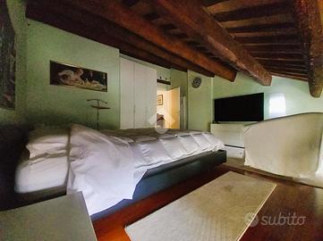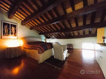 Dal disimpegno, infine, possiamo giungere al caratteristico 'abbaino', stanza luminosa e riservata, con affacci suggestivi sui tetti del centro storico, che può essere utilizzata come terza camera, oppure come studio / stanza giochi, ecc...