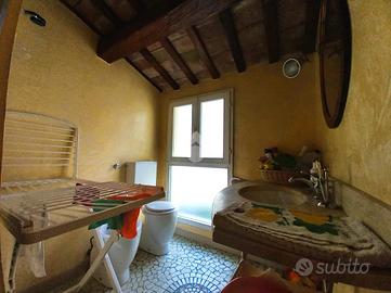 Tornando al piano terra, dal cortile interno quindi, possiamo entrare nella dépendance della casa, anch'essa disposta su 2 livelli, dove troviamo una zona giorno al piano terra ed una camera matrimoniale e bagno finestrato al piano primo. Anch'esso ristrutturato, si presenta in buone condizioni interne.