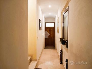 Ingresso indipendente al piano terra e corridoio che divide la scala che conduce alla abitazione, dal cortile interno e relativa dépendance.