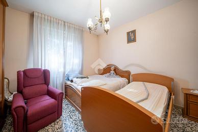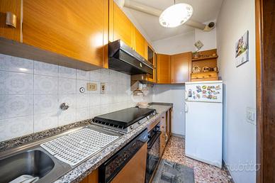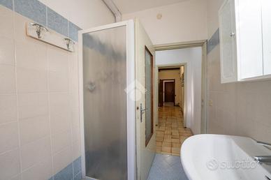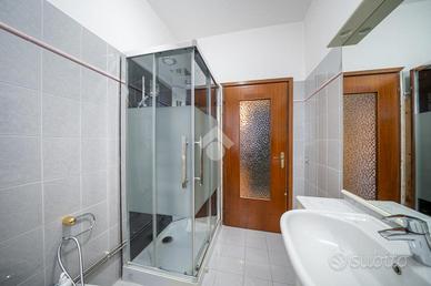 Salendo al primo piano, l'appartamento principale di 105 mq vi sorprenderà con una cucina che si apre sul balcone. Il soggiorno offre uno spazio confortevole per rilassarsi, mentre la zona notte dispone di due ampie camere matrimoniali e un bagno raffinato con box doccia a cascata.