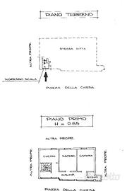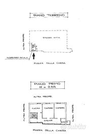 Il piano primo ospita la parte abitativa che si compone da due camere da letto, un bagno e una cucina abitabile.