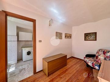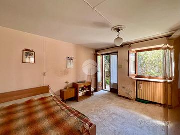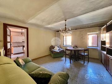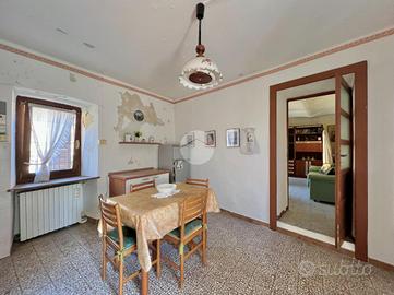 Nel centro storico di Balangero, a breve distanza dai principali servizi del paese, si propone una soluzione semindipendente da ristrutturare. L'immobile si sviluppa su due livelli. La parte abitativa si raggiunge tramite una scala esterna che conduce al balcone d'ingresso. Da qui si accede alla prima camera, attualmente utilizzata come disimpegno; la distribuzione interna è caratterizzata da ambienti comunicanti tra loro, senza un corridoio, con passaggio diretto da una stanza all'altra. Proseguendo si trovano la cucina, una seconda camera adibita a soggiorno e un ulteriore locale utilizzato come ripostiglio. A completare il piano un bagno finestrato dotato di doccia. Dal balcone, tramite una scala in legno, si accede al solaio a vista, dove è collocata anche la caldaia a metano, inserita in un gabbiotto metallico; non se ne garantisce il funzionamento in quanto inutilizzata da diversi anni. Il tetto si presenta in condizioni complessivamente buone, ma necessita comunque di ristrutturazione. Al piano terreno si sviluppano tre locali: un soggiorno, un ambiente adibito a lavanderia e una cantina con accesso dal retro dell'abitazione. Esternamente è presente un servizio igienico con solo wc. L'immobile è collegato alla rete fognaria comunale; il riscaldamento è a metano tramite termosifoni, utilizzato anche per la cucina, mentre la fornitura idrica è gestita da SMAT. La stazione ferroviaria è raggiungibile in circa 15 minuti a piedi. A completare la proprietà sono presenti un box auto singolo e un cortile privato pertinenziale, con possibilità di parcheggio.