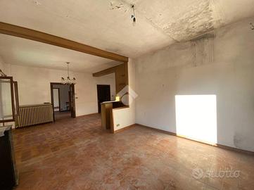 La parte abitativa, che si sviluppa su tutto il piano primo, è di generosa metratura ed ospita un' ampia sala da pranzo, una cucina con tinello, tre spaziose camere da letto e due servizi.