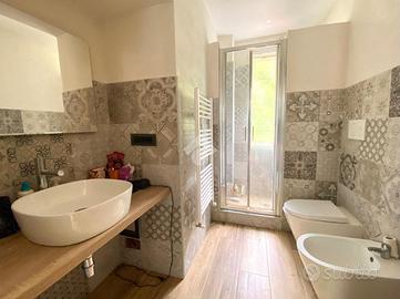 Lo spazio esterno precedentemente citato è caratterizzato dalla presenza di forno a legna comodo per essere sfruttato nei periodi primaverili/estivi. Tramite scalette poste nel terrazzo si raggiunge il giardino di 440mq accessoriato da una cascina utile per essere sfruttata come deposito attrezzi o ripostiglio.