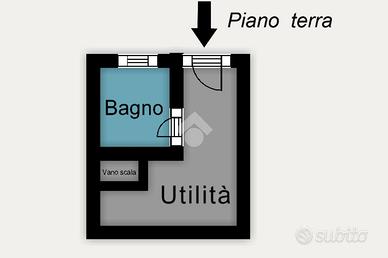 * Al piano terra, dotato di un secondo accesso indipendente, sono presenti un bagno e un locale di servizio, utilizzabile come ripostiglio, lavanderia o spazio multiuso.