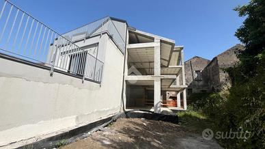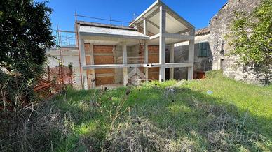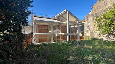 Aiello - proponiamo soluzione semindipendente allo stato grezzo disposta su 3 livelli; al piano interrato troviamo un ampio deposito; al piano terra ingresso/soggiorno, cucina-pranzo e bagno e infine al piano primo 2 confortevoli camere da letto, bagno e balcone. Completa la proprietà ampia zona esterna di ca. 215 mq. suddivisa in corte e giardino.