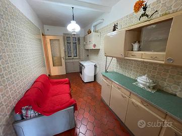 La soluzione, disposta su due livelli, è composta dalla zona giorno al piano terra che prevede l'ingresso su soggiorno, una cucina abitabile, una camera da letto e un ripostiglio; tramite scala interna accediamo al piano primo dove troviamo due camere da letto di cui una con portafinestra che conduce al terrazzo e un bagno finestrato con doccia.