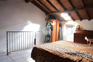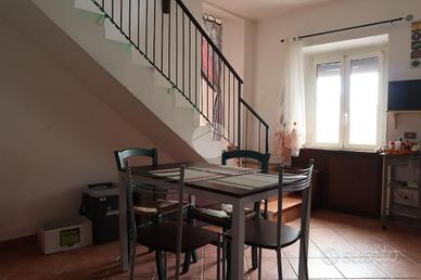 L'alloggio al piano primo, invece, si presenta in buono stato di manutenzione con infissi in doppio vetro.