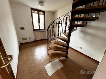Situata ai margini della campagna sud del paese, questa piccola porzione è disposta su tre livelli, collegati internamente da una scala a chiocciola in legno. Il cortile è comune con un altra proprietà ma, previo accordo con il vicino di casa, potrebbe essere possibile parcheggiare un'automobile. LA CASA NON POSSIEDE AREA ESTERNA DI PROPRIETA', NON HA GARAGE E NEMMENO LA CANTINA. L'ingresso si apre direttamente nella zona giorno e dalla stanza adiacente si sale ai piani superiori. Al primo piano c'è la camera da letto con il balcone affacciato sul verde, ed il bagno (da sistemare). Al secondo piano, ci sono due vani non abitabili ma potenzialmente sfruttabili come disbrigo, ripostiglio, studio o locale accessorio. Particolarmente utile e capiente il ripostiglio. L'abitazione è da ristrutturare ma con pochi lavori è già abitabile. LA CALDAIA NON E' FUNZIONANTE, QUINDI DA SOSTITUIRE.