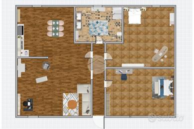 L'appartamento si trova al primo piano di una piccola palazzina e si compone di un ampio soggiorno con camino, una cucina abitabile, una camera matrimoniale, una camera singola e un bagno finestrato.