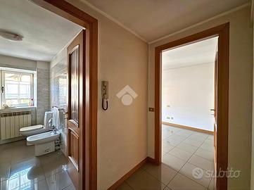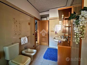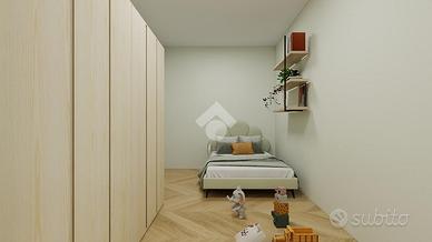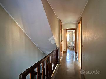 La zona notte, al piano superiore, è composta da tre camere da letto, di cui due con balcone, oltre a un bagno ed un ripostiglio. Al piano più alto si trova il sottotetto, utilizzabile come spazio accessorio o deposito. Completano la proprietà box auto e cantina.