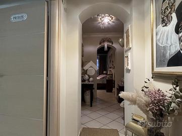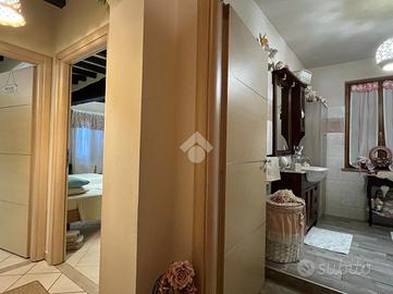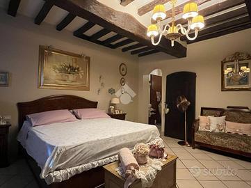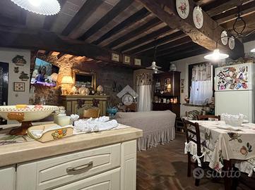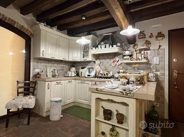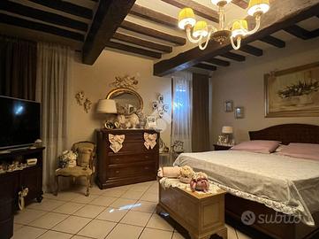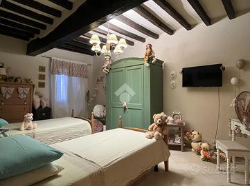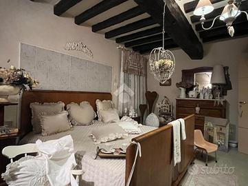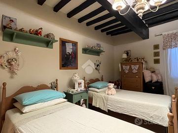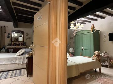 Porzione di casa che offre ampi spazi essendo su tre livelli. Al primo piano troviamo una spaziosa sala con angolo cottura una camera matrimoniale e due bagni. Al secondo piano sono presenti tre camere da letto matrimoniali e un bagno. Completa la proprietà un sottotetto una cantina e un porticato esterno privato con soppalco.