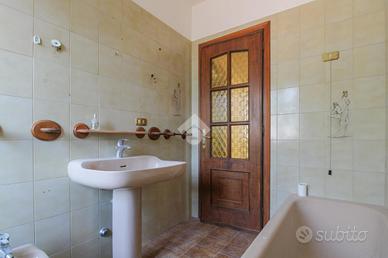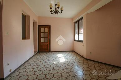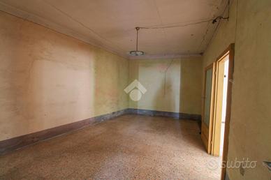Varcata la porta d'ingresso principale al piano terra, una scala ci accompagna al primo piano, dove troviamo un appartamento indipendente risalente agli anni '60, completamente da ristrutturare. L'ingresso si apre su una zona giorno luminosa, due possibili camere da letto, cucina abitabile e bagno finestrato.