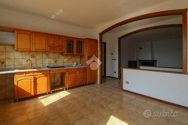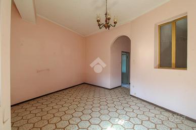 Varcata la porta d'ingresso principale al piano terra, una scala ci accompagna al primo piano, dove troviamo un appartamento indipendente risalente agli anni '60, completamente da ristrutturare. L'ingresso si apre su una zona giorno luminosa, due possibili camere da letto, cucina abitabile e bagno finestrato.