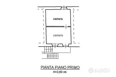 Tramite una scala esterna si accede al piano superiore, dove si trovano due camere da letto e un secondo bagno finestrato.