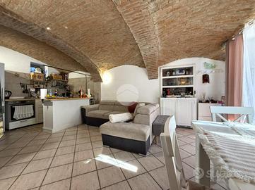 Al piano terra si trova una luminosa zona giorno con ampio soggiorno dotato di stufa a pellet, angolo cottura e bagno di servizio finestrato.