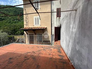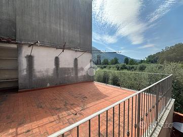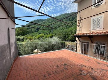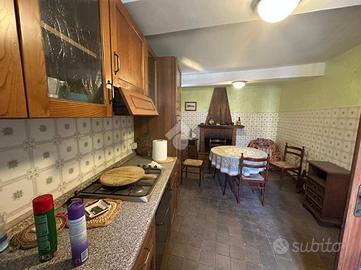 Appena entrati troviamo soggiorno, cucina abitabile con suggestivo camino e ampia terrazza abitabile che è stato ristrutturata nel 2020.