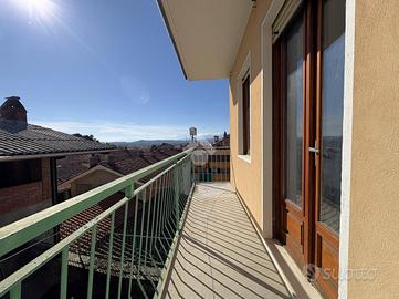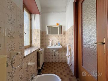 Salendo al primo piano, la zona notte offre due confortevoli camere da letto di cui una matrimoniale, entrambe con affaccio sul balcone, e un bagno finestrato con vasca di generosa metratura.