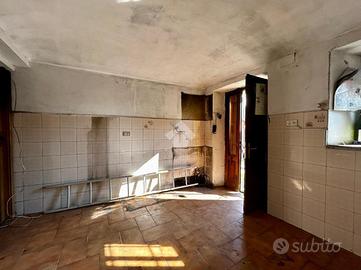 L'immobile è situato in una zona tranquilla e soleggiata del paese; l'ngresso è al piano rialzaro nella cucina abitabile ed adiacente ad essa troviamo un disimpegno che divide il bagno dalla camera da letto. Si può godere in oltre di un balcone grazie al quale si accede all'ultima camera. A completare l'abitazione troviamo un'ampia cantina e un giardino privato utilizzabile anche come posto auto.
