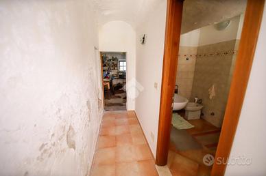 In zona centrale, vicino ai servizi che offre il paese, soluzione semindipendente libera su due lati. L'immobile si presenta da ristrutturare ad esclusione del tetto e della tettoia che che sono stati rifatti. Il piano terreno dispone di cucina, bagno, due locali ed un locale di sgombero. Il piano superiore è collegato da scala interna e si compone di una camera con vista panoramica e una camera matrimoniale con balcone. Sul piano è presente un locale di sgombero aperto nel quale è possibile ampliare la soluzione. Nella parte antistante si sviluppa l'ampio cortile privato dove trova posto la tettoia utilizzable per il ricovero dell'auto. L'area esterna è dotata di accesso con passo carraio e punto acqua.