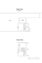 L'ingresso si apre su un piccolo salone accogliente, collegato ad una cucina abitabile con camino. Sullo stesso livello si trova anche un piccolo e utile bagno di servizio.