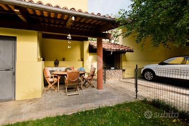 Dona infine valore aggiunto alla soluzione l'ampio cortile privato, in parte destinato ad area verde e in parte pavimentato, ideale da sfruttare nelle belle stagioni per momenti di relax, oltre ad un portico coperto con tre posti auto e magazzino di servizio.