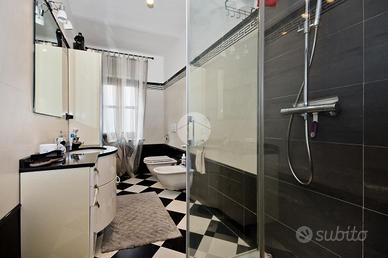 All'interno della stessa proprietà, ma con accesso indipendente, vi è inoltre un bilocale disposto su due livelli, attualmente affittato con ottima rendita annua, composto dalla zona giorno al piano terreno, e da una camera da letto matrimoniale ed un bagno al piano superiore; questo bilocale può essere facilmente ricollegato all'abitazione principale semplicemente abbattendo una parete, ampliando così i giá generosi ambienti di cui gode la soluzione.