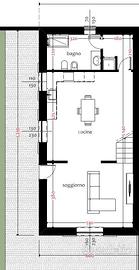 Il fabbricato è composto da una zona giorno con il primo bagno al piano terreno e da due camere al piano superiore con il secondo bagno.