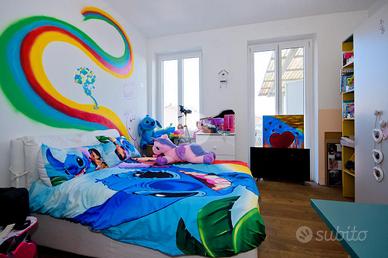 Tramite scala interna si accede al piano primo, il quale ospita la zona notte, con le due camere da letto, un soggiorno al piano trasformabile in terza camera da letto, il secondo bagno con doccia ed un ampio balcone.