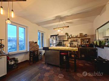 Al piano terra l'ingresso è su un'ampia zona giorno open space, che unisce salotto e cucina insieme, con disimpegnato il primo bagno, servito di doccia, ed una dispensa a vista.