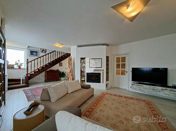 Tramite una scala a chiocciola si raggiunge poi il piano mansardato, concepito come un unico ampio ambiente open space, con bagno ed uscita sul terzo ed ultimo balcone della casa.