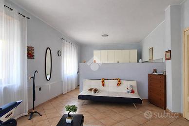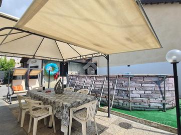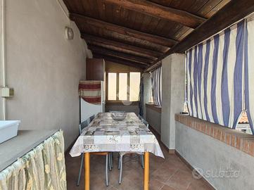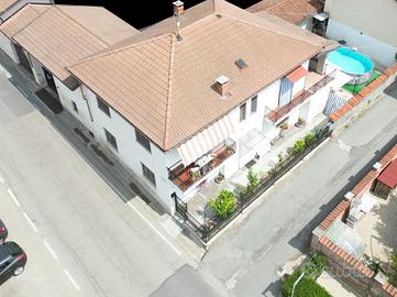 Proponiamo a Bandito soluzione semi-indipendente in posizione centrale. La porta di ingresso accede su di un disimpegno che collega la taverna ed il box auto alla scala. L'appartamento al primo piano è di 4 locali. Le camere sono entrambe di dimensioni matrimoniali e luminose. La zona giorno è composta da cucina e dal soggiorno collegati tramite un balcone che conduce al terrazzo. Il cortile è privato e necessita di poca manutenzione. Completano la proprietà due box auto e locali accessori di magazzino. Attualmente l'immobile risulta locato.