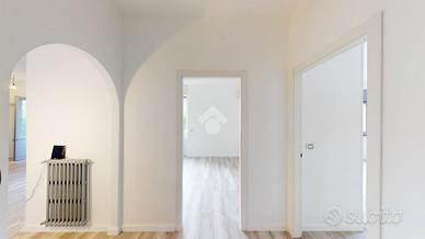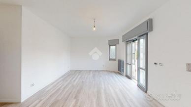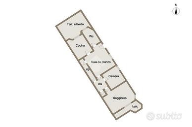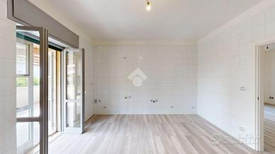A seguire, dalla sala da pranzo si ha l'accesso in un bagno con box doccia ed alla cucina, luminosa grazie all'accesso al terrazzo a livello.